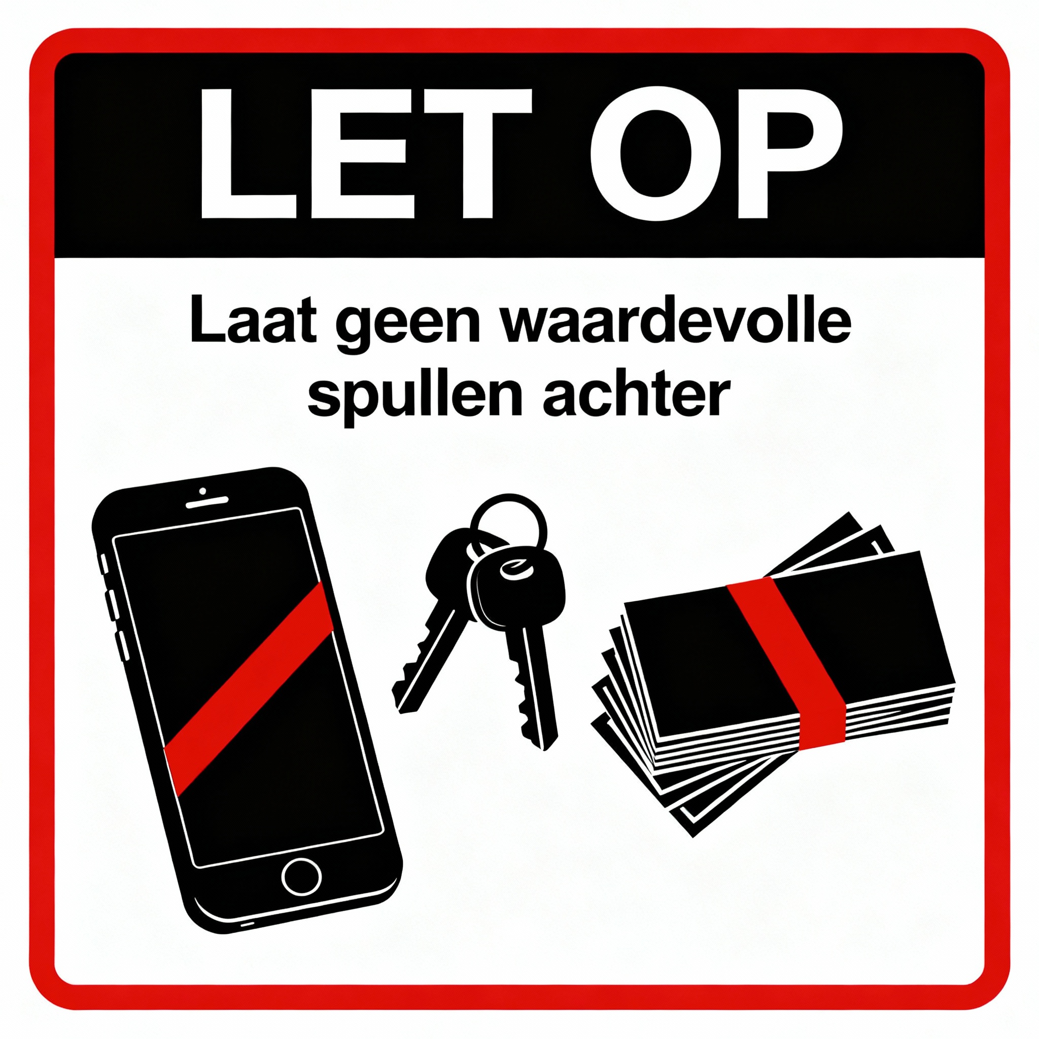 Daarom het dringende advies: laat geen waardevolle spullen in de kleedkamer achter. Stop ze in je tas en neem ze mee de zaal in. Leg je tas bij de spelersbank. Of nog beter: laat waardevolle spullen thuis.