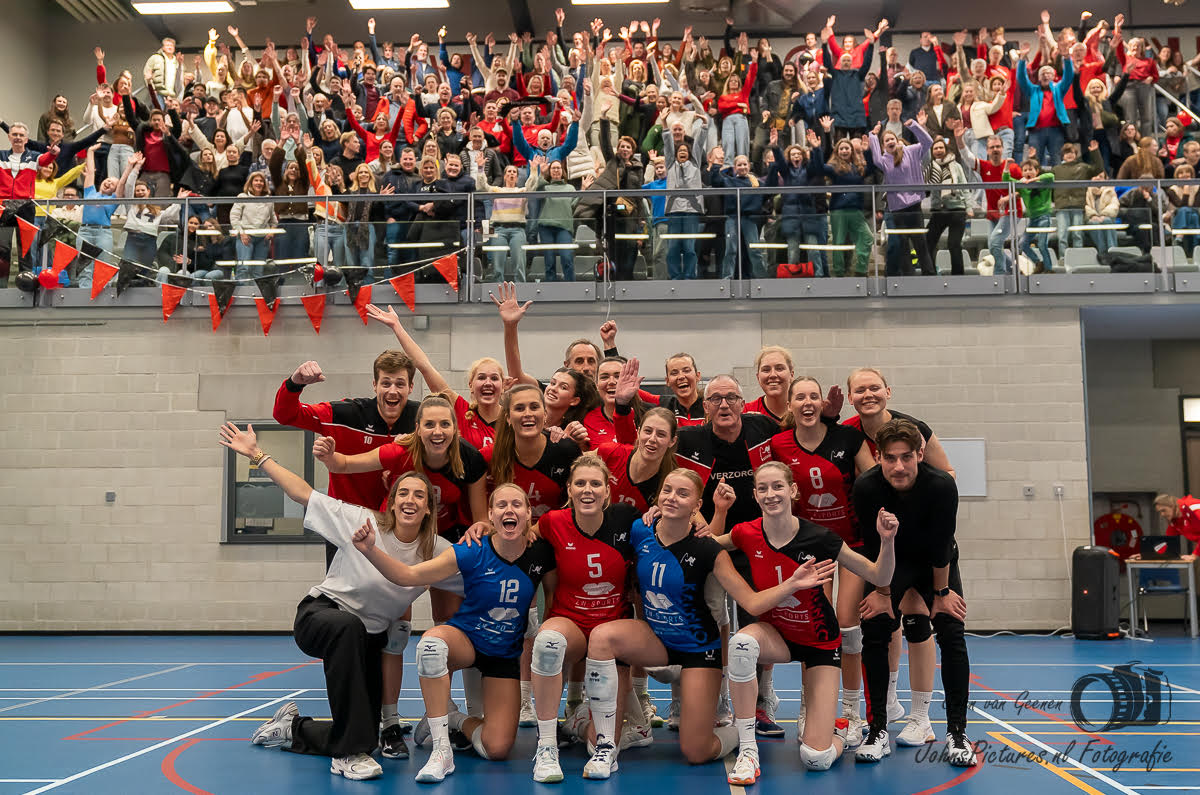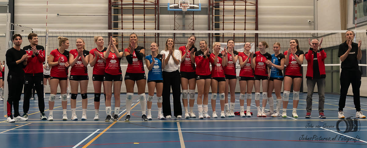 Massaal was het publiek binnen gekomen en vond een plekje op de tribune. Prachtig om te zien dat zoveel mensen de weg naar sporthal Houtrust hadden gevonden en iets van rood hadden aangetrokken!