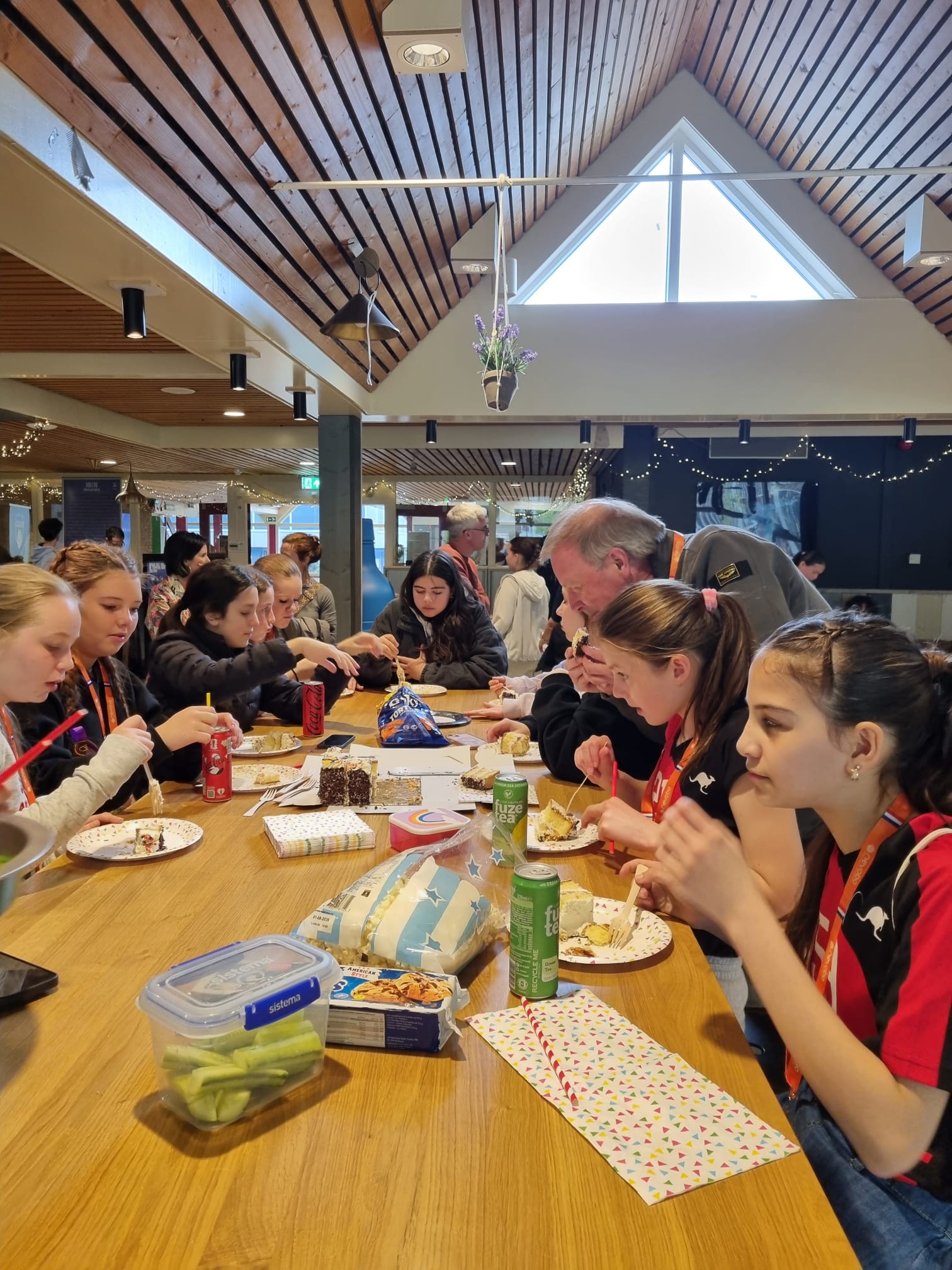 De laatste wedstrijd werd helaas verloren, maar het kampioenschap was een feit en kon gevierd gaan worden. De meiden kregen de medailles en de schaal en natuurlijk was er taart!!