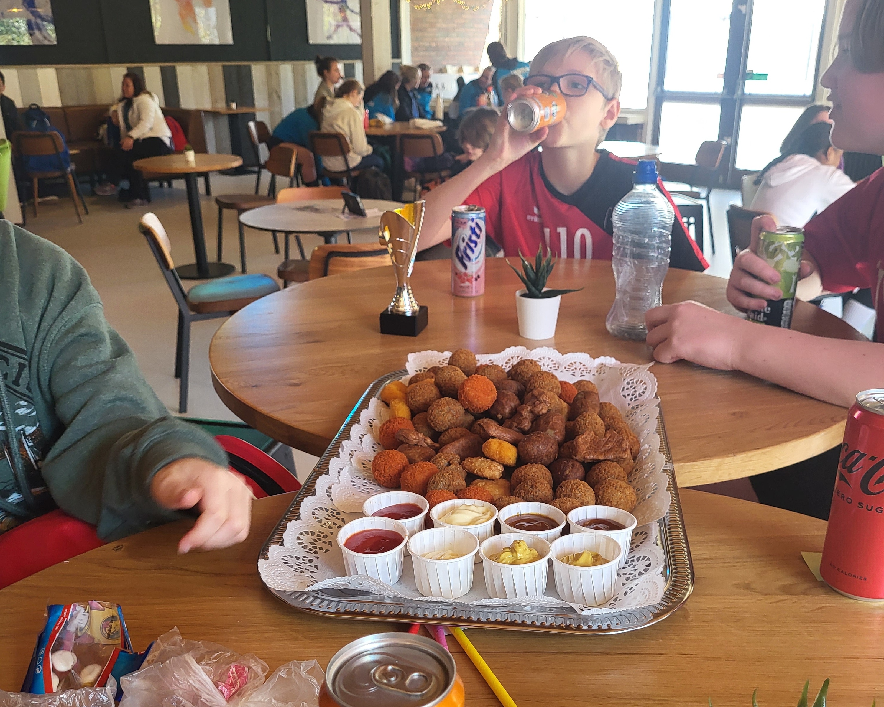 Na de laatste wedstrijd was er een grote schaal bitterballen waar de spelers ook geen enkele moeite mee hadden.