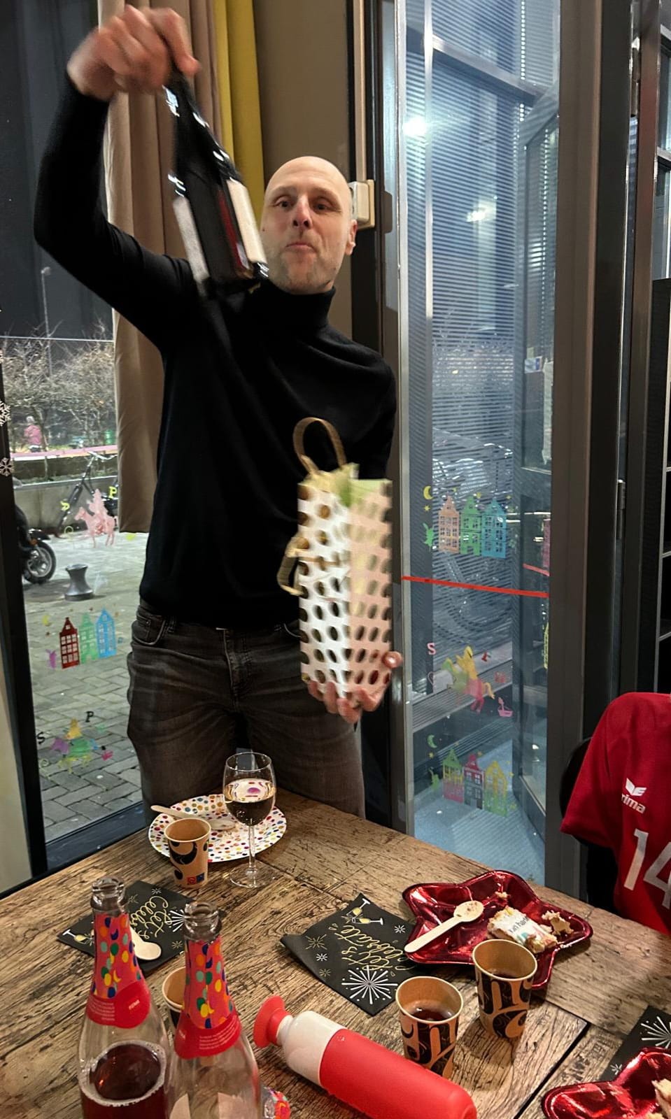 Maar wel tijd voor taart en een cadeautje voor de coach.